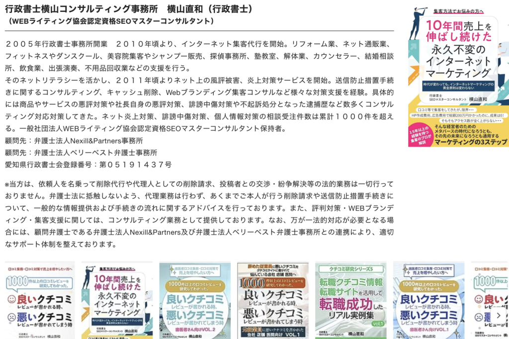- 専門分野: 企業向けクチコミ・風評被害対策、逆SEO、WEB集客代行、レピュテーションリスク管理