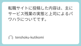 ❌ あなたが過去に勤務していた企業に対して転職サイトへ悪いクチコミを書いた内容を教えてください。(その企業について業界、仕事内容、悪いクチコミ内容)