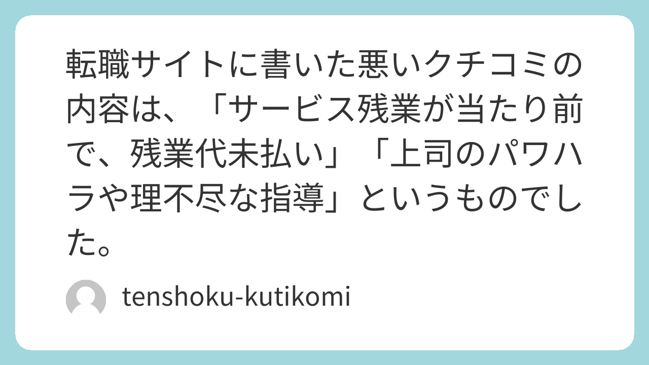 ❌ あなたが過去に勤務していた企業に対して転職サイトへ悪いクチコミを書いた内容を教えてください。(その企業について業界、仕事内容、悪いクチコミ内容)